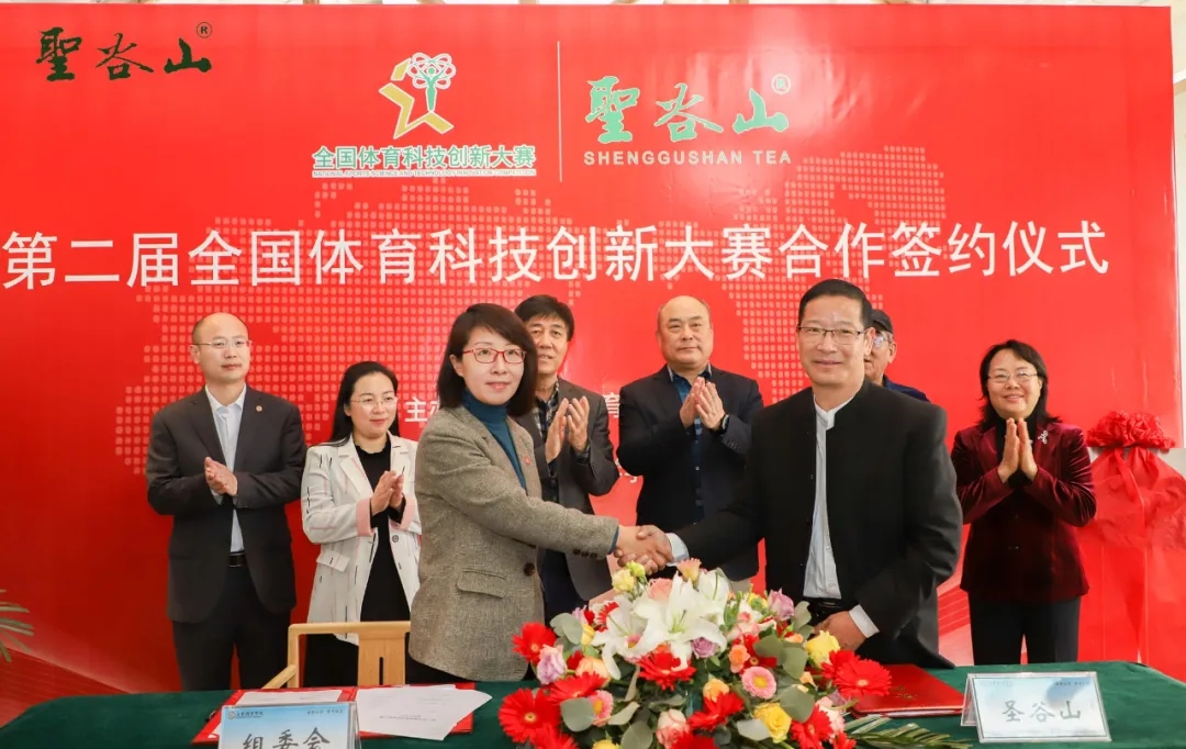 第二屆全國(guó)體育科技創(chuàng)新大賽首個(gè)贊助企業(yè)圣谷山茶場(chǎng)簽約儀式今天上午在美麗的日照圣谷山茶博園成功舉辦。