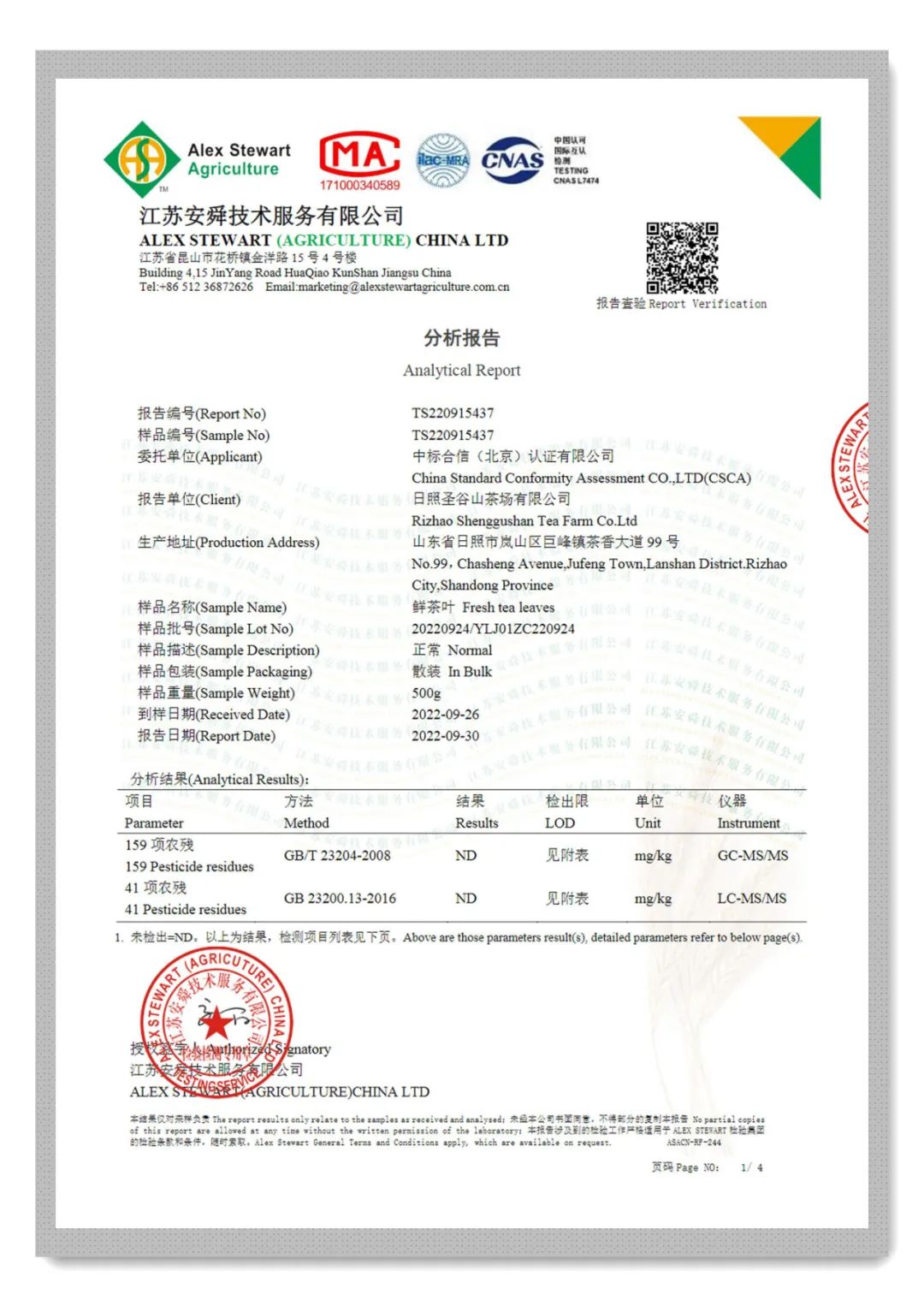 圣谷山|國(guó)際有機(jī)認(rèn)證檢驗(yàn)200項(xiàng)ND!