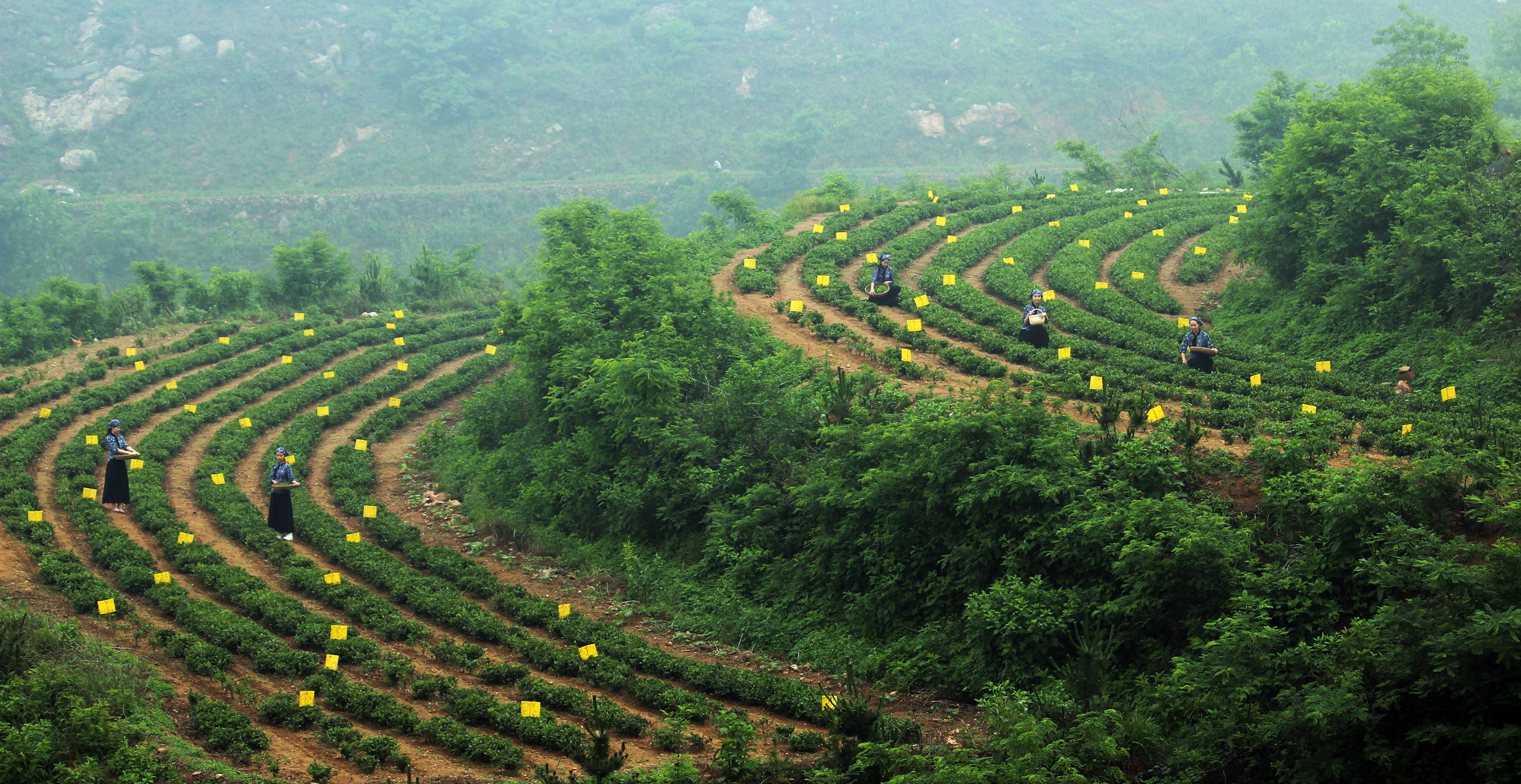 “為什么不用除草劑除草呢?”孫紅梅問。對此,高建華介紹,做有機茶,不僅對茶葉的生長環(huán)境有嚴格的要求,同時對茶園的管理模式也有著嚴格的要求,不能用化學合成的除草劑,只能用人工除草的方式清除茶園里的雜草。圣谷山有五片茶園,眼前這片南山茶園有300余畝,管理起來也是比較費力,工作人員還沒有趕工,趕到這里。